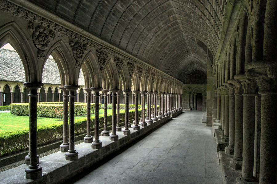 Tot ce s-a întamplat atunci stă sub semnul miracolului: de la împrejmuirea muntelui cu apele oceanului, până la descoperirea unui izvor de apă dulce chiar la picioarele stâncii, acolo unde începe platoul de nisip. De-a lungul timpului, mănăstirea a devenit un labirint de biserici, capele și săli cu diferite destinații pentru viața monahală de zi cu zi.